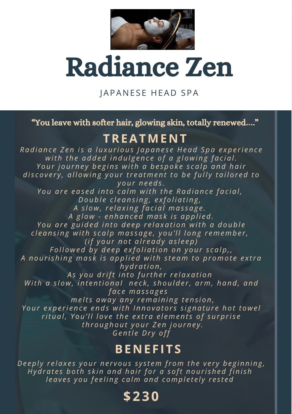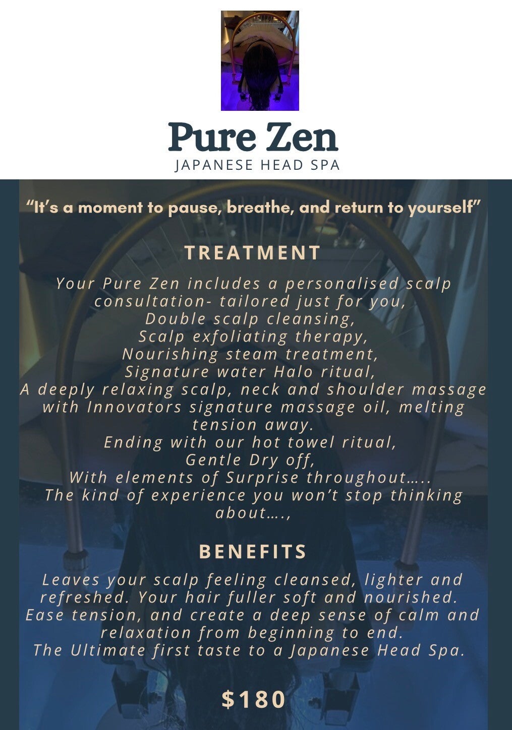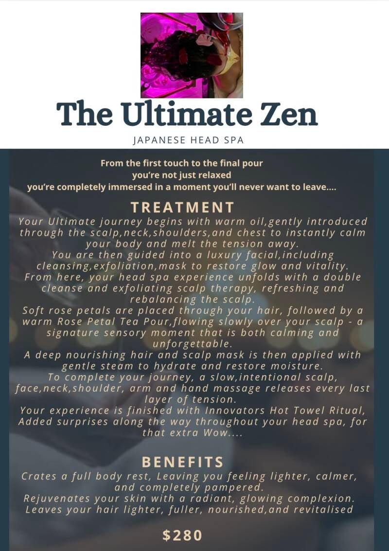 PURE ZEN PAMPERING you'll never want to leave. Which includes not just a scalp massage but neck and shoulder, facial, hand, foot this list is endless, I'm so happy to be offering this In Cowra.
